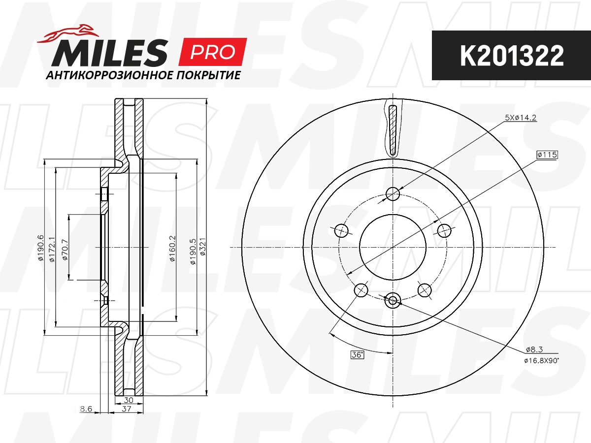 K201322 MILES Диск тормозной (серия PRO с антикоррозионным покрытием) OPEL ASTRA J/ZAFIRA C 11