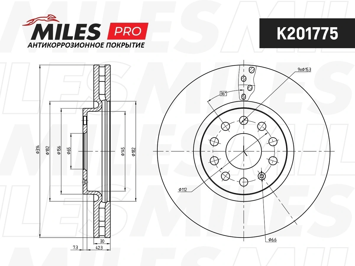 K201775 MILES Диск тормозной (серия PRO с антикоррозионным покрытием) SKODA KODIAQ/VW TIGUAN 1
