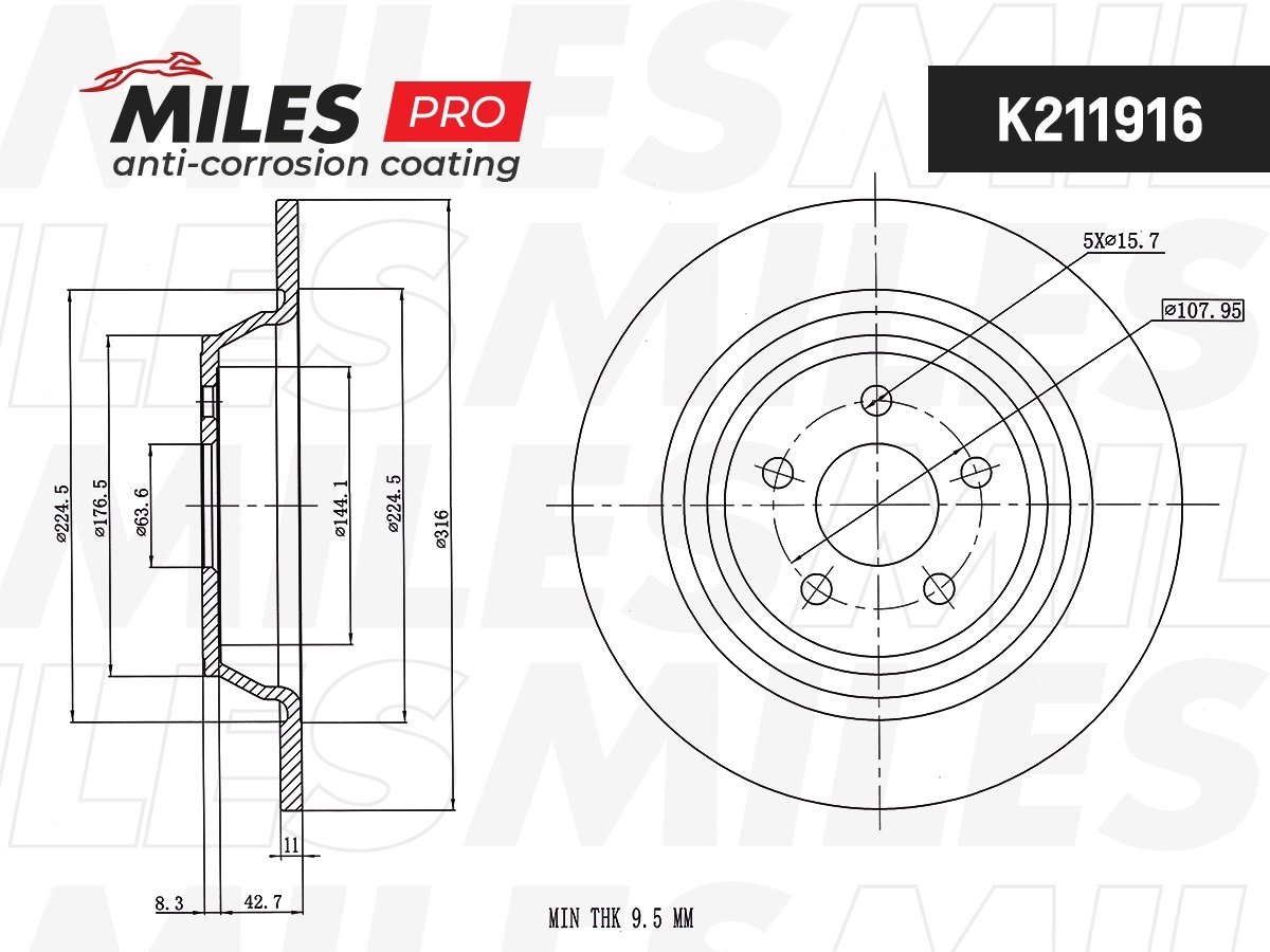K211916 MILES Диск тормозной (серия PRO с антикоррозионным покрытием) FORD GALAXY/S-MAX 15- за