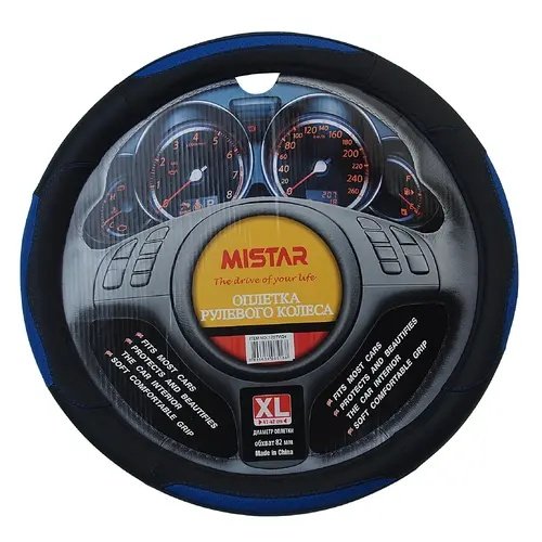MIS17STW24BLXL MISTAR Оплетка руля (XL) 41-42см черно-синяя кожа MISTAR