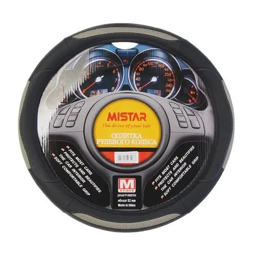 | Наименование | Оплетка руля (M) 37-39см черно-серая MISTAR |