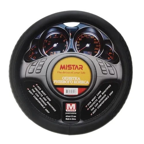 Оплетка руля (M) 37-39см черная MISTAR