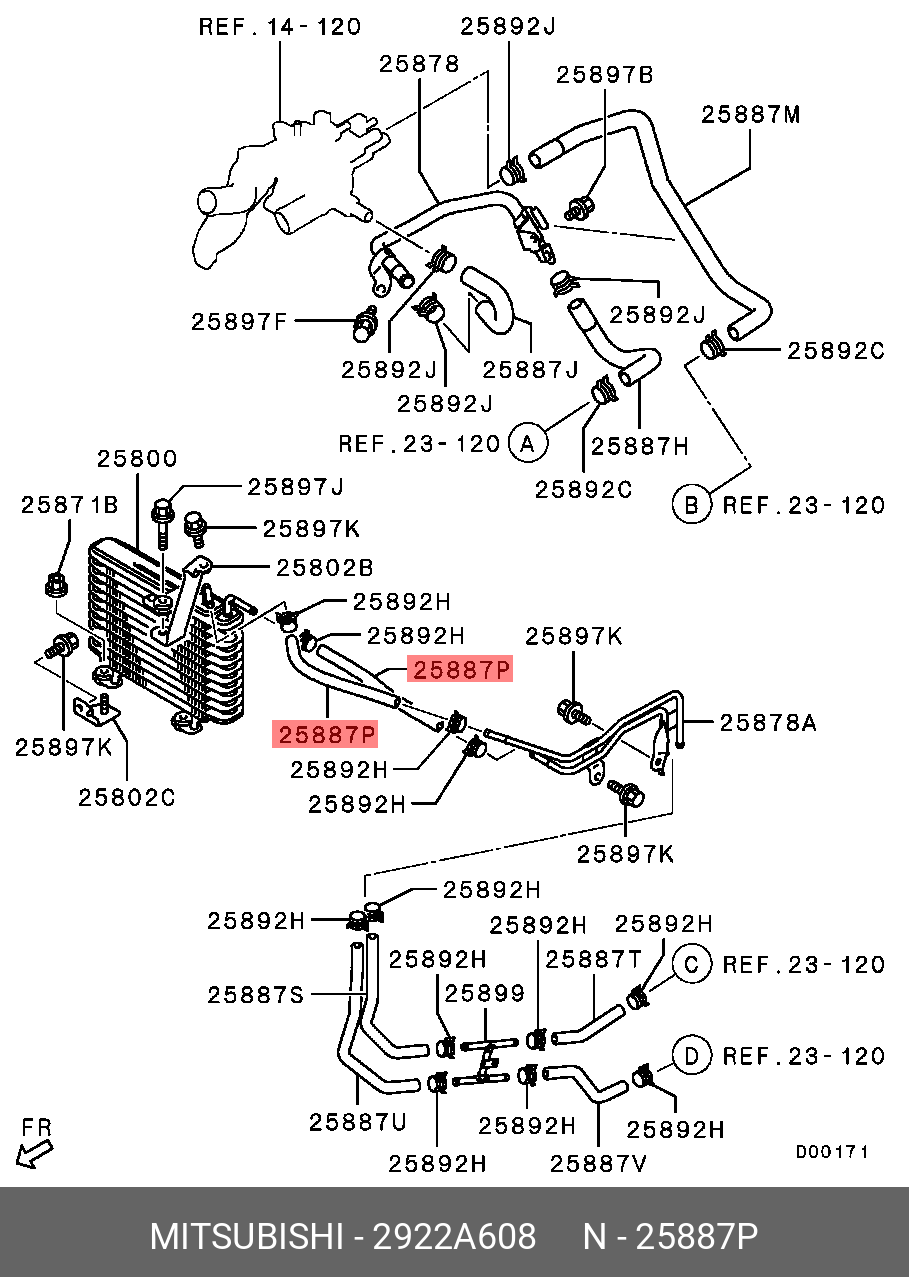 2922A608 MITSUBISHI Шланг MITSUBISHI Outlander радиатора раздаточной коробки OE