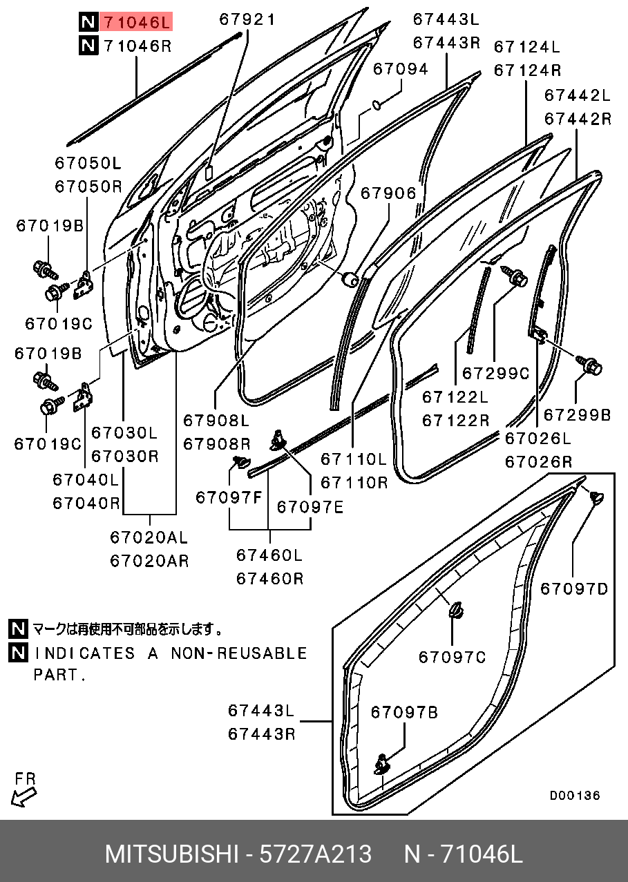 5727A213 MITSUBISHI молдинг стекла! передней левой двери\ Mitsubishi ASX 10>