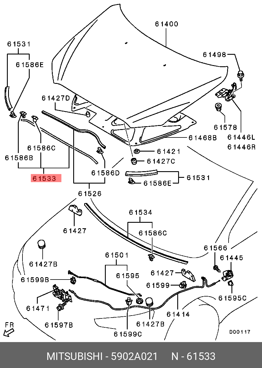 5902A021 MITSUBISHI уплотнитель капота! передний, внутри\ Mitsubishi Lancer CX/CY 07>