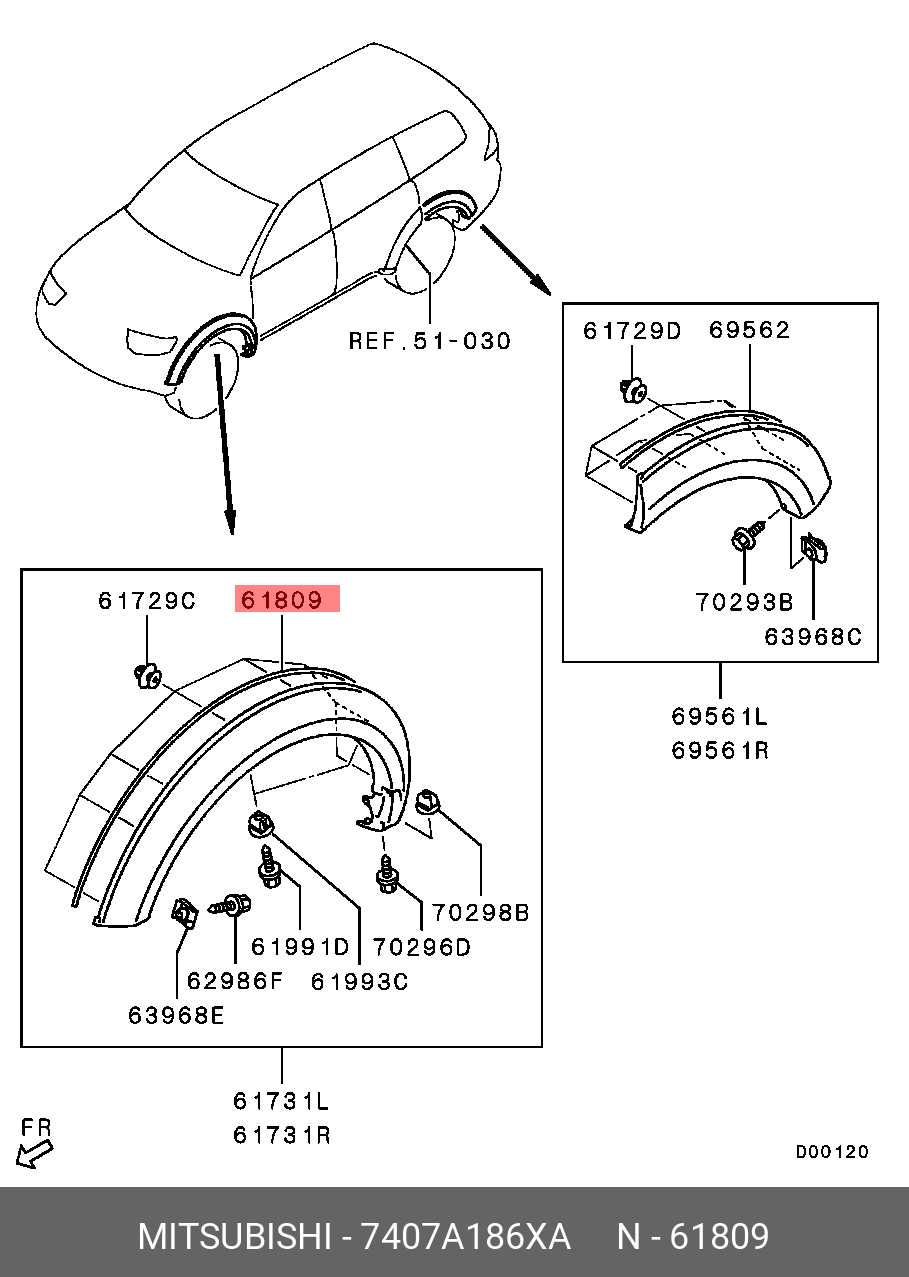 7407A186XA MITSUBISHI уплотнитель !расширителя крыла переднего \ Mitsubishi L200 06>/Pajero/Montero Sp