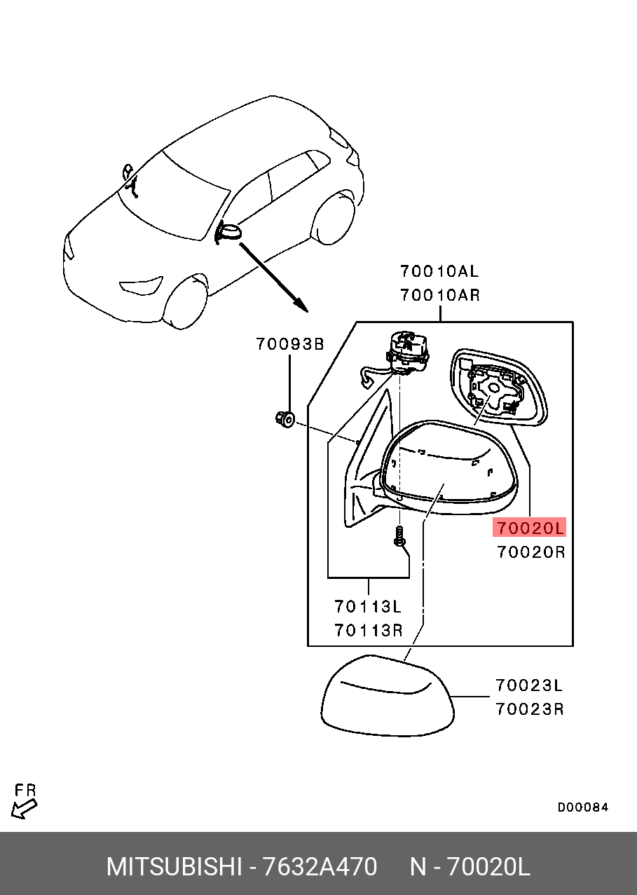 7632A470 MITSUBISHI Элемент зеркальный MITSUBISHI Outlander (05-) левый OE