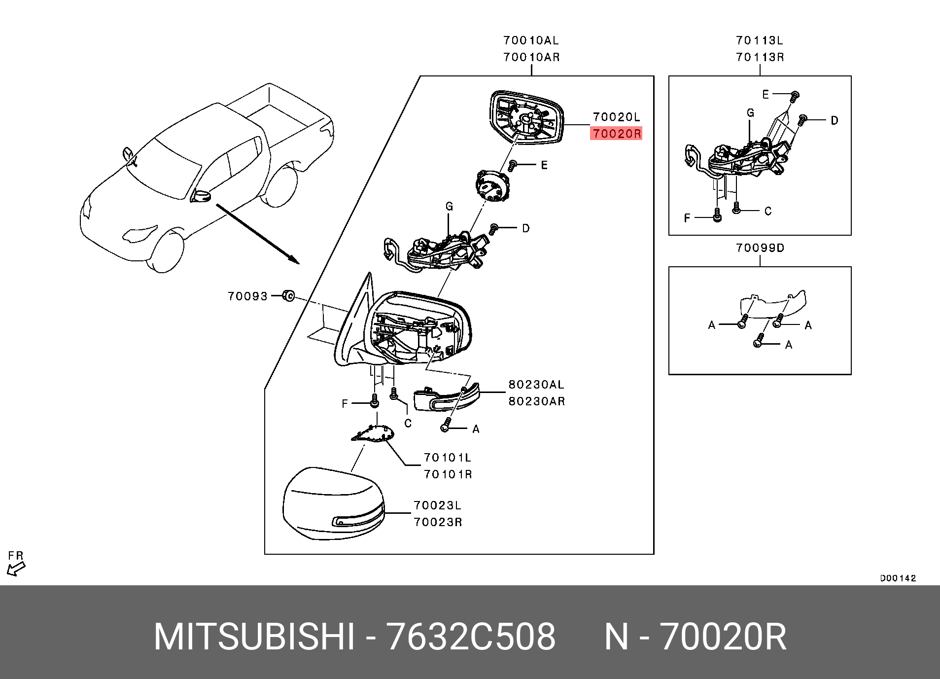 7632C508 MITSUBISHI СТЕКЛО ЗЕРКАЛА