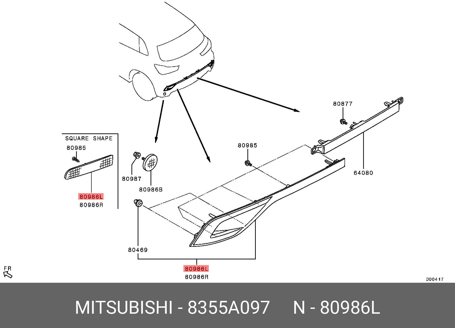 8355A097 MITSUBISHI отражатель в бампер! задний левый\ Mitsubishi ASX 10>