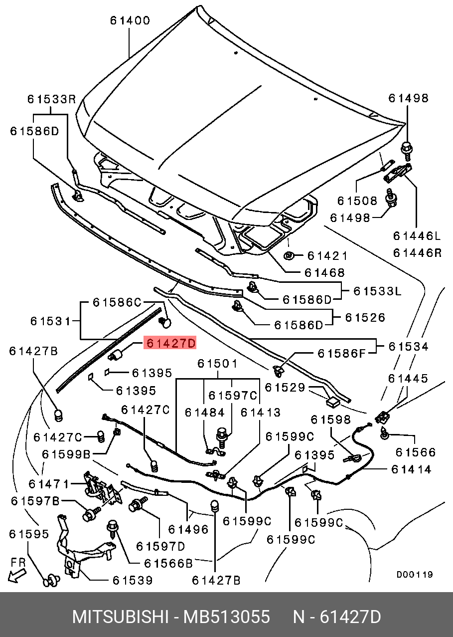 MB513055 MITSUBISHI Отбойник MITSUBISHI Pajero (99-06) капота OE