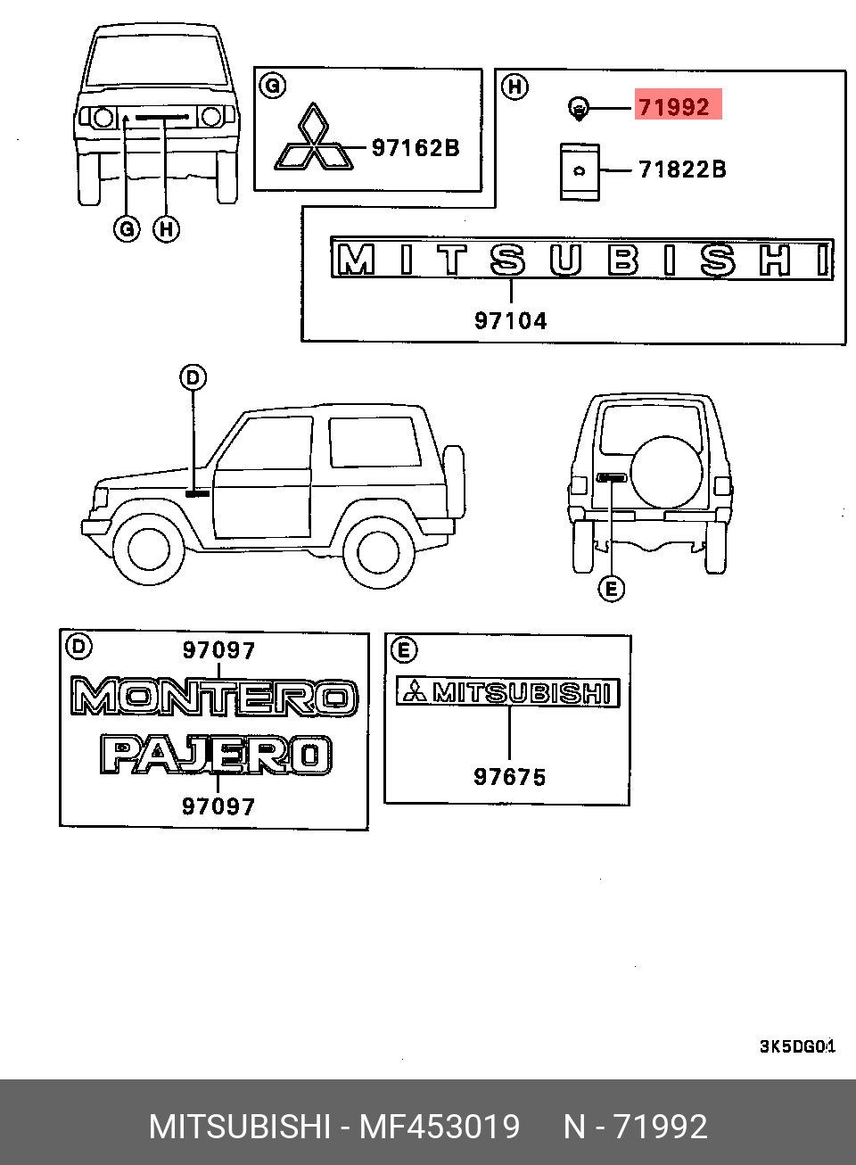 MF453019 MITSUBISHI Винт MITSUBISHI решетки передней нижней OE