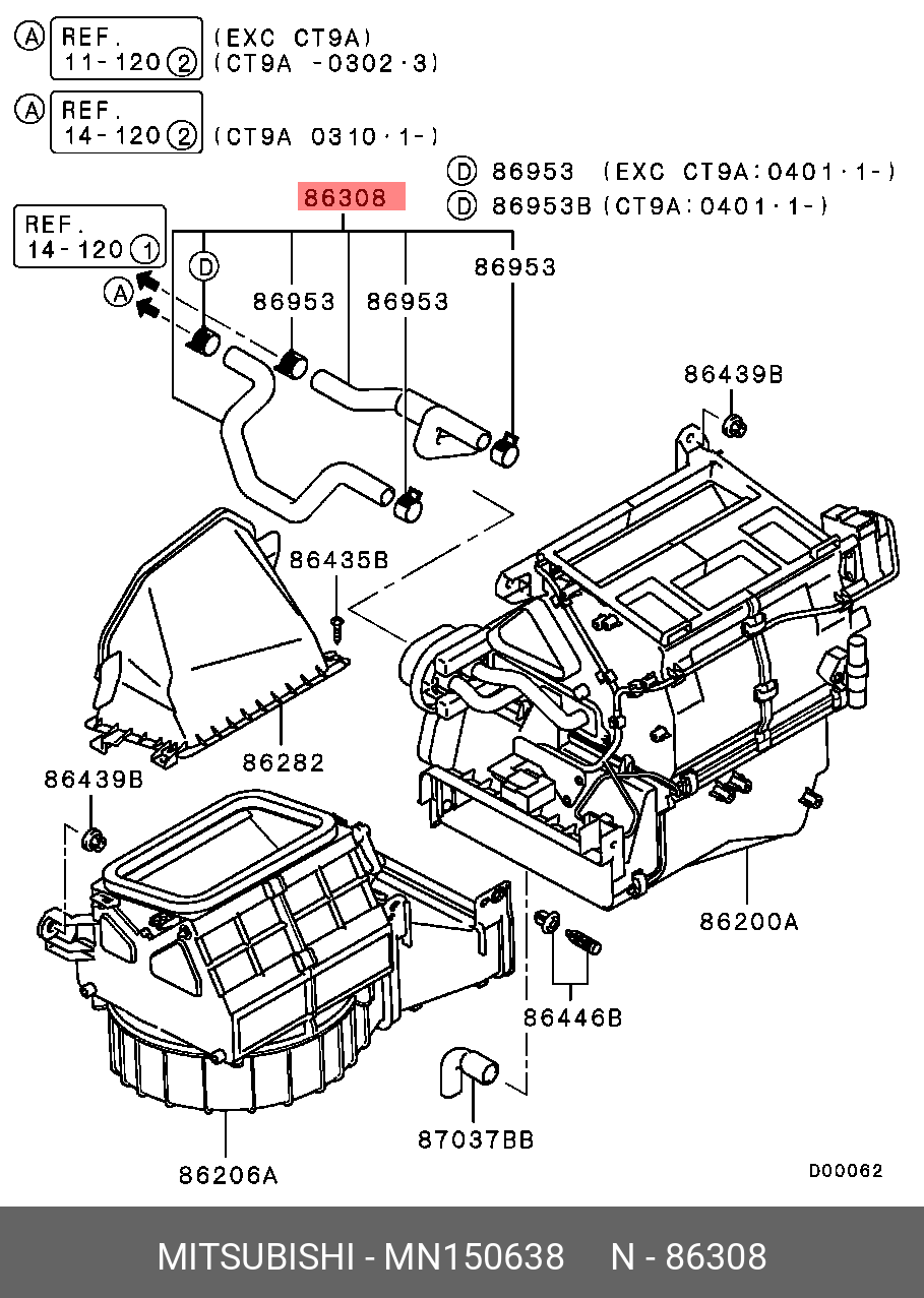 MN150638 MITSUBISHI ШЛАНГИ ОТОПИТЕЛЯ,КОМПЛЕКТ MN150638
