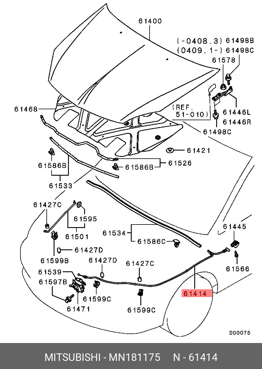 MN181175 MITSUBISHI трос открывания капота!\ Mitsubishi Lancer 03>