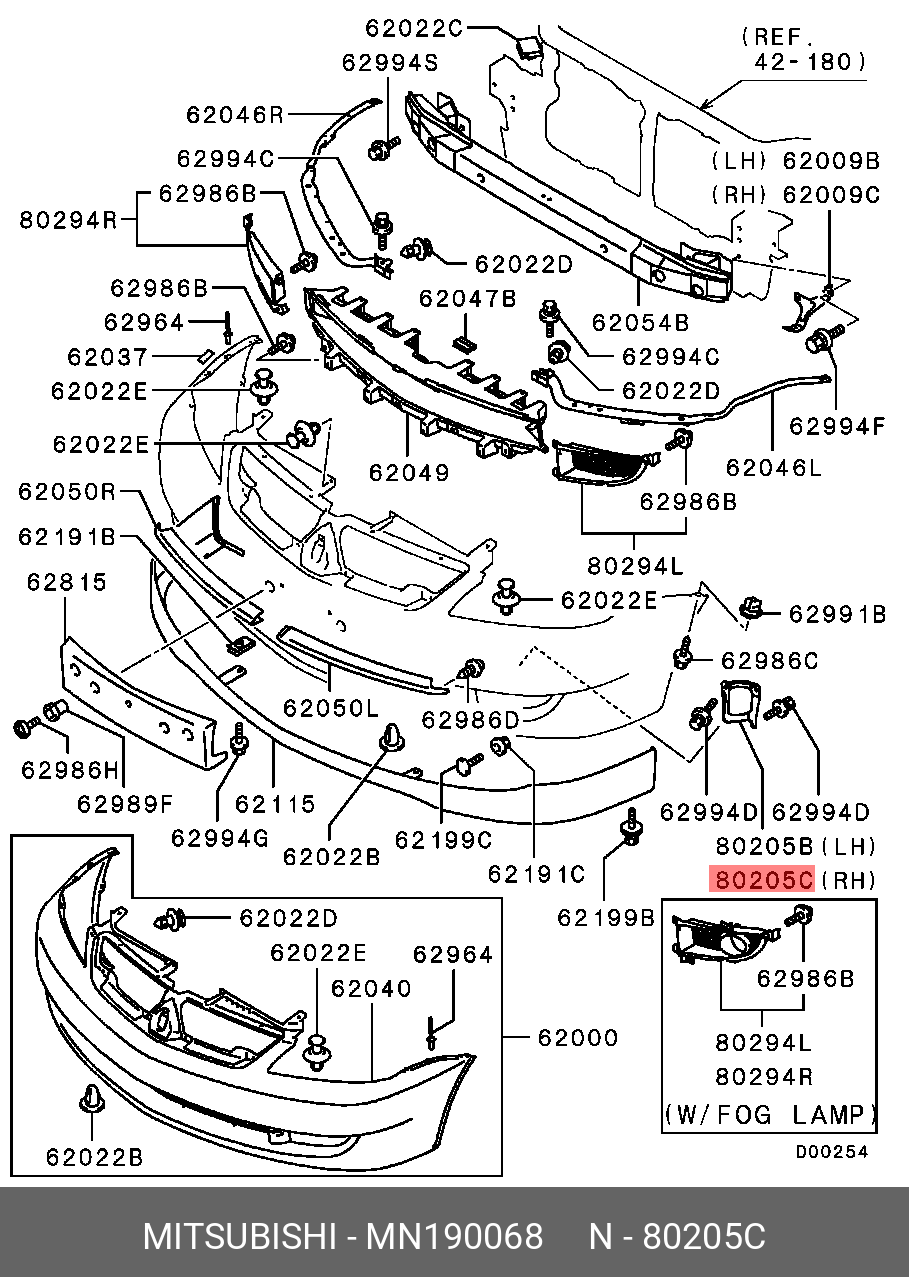 MN190068 MITSUBISHI КРОНШТЕЙН ПЕРЕДНЕЙ ПРОТИВОТУМАННОЙ ФАРЫ MN190068