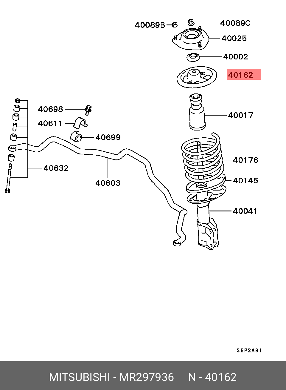 MR297936 MITSUBISHI чашка пружины передней! верхняя\ Mitsubishi Colt/ Lancer