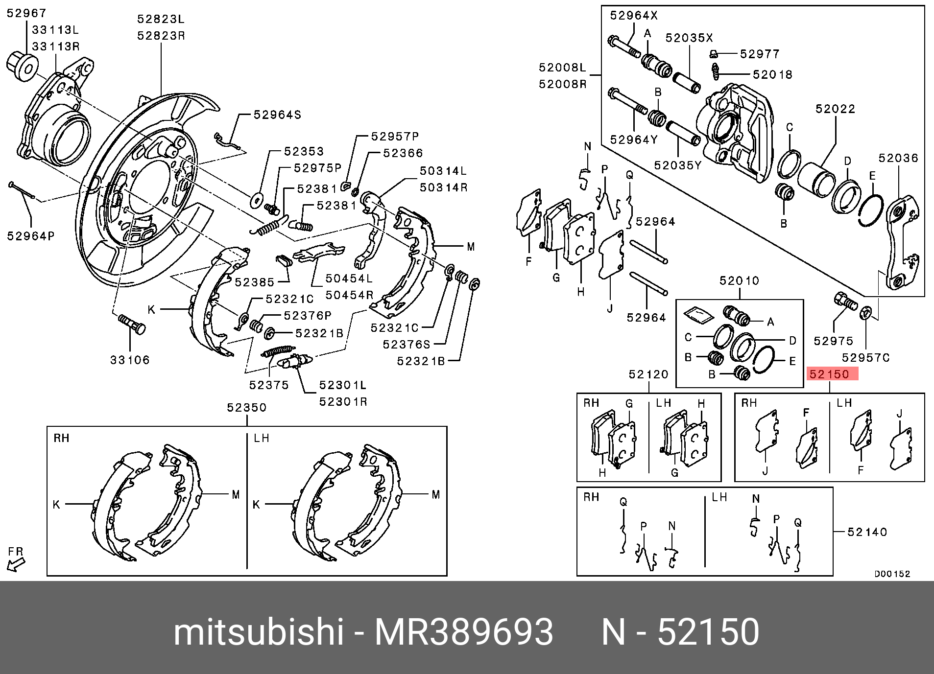 MR389693 MITSUBISHI ПРОКЛАДКИ ЗАДНИХ КОЛОДОК,К-Т MR389693