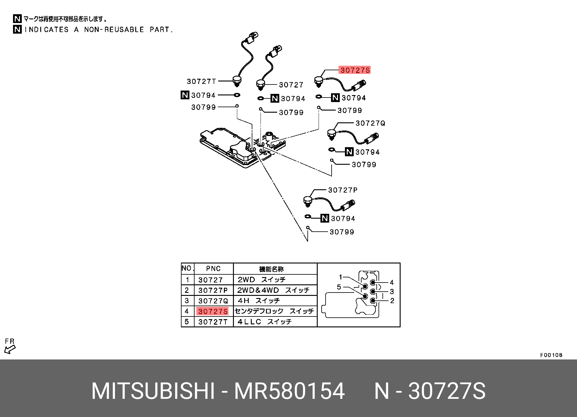 MR580154 MITSUBISHI ДАТЧИК ПЕРЕМЕЩЕНИЯ РУЧКИ РАЗДАТОЧНОЙ КОРОБКИ MR580154