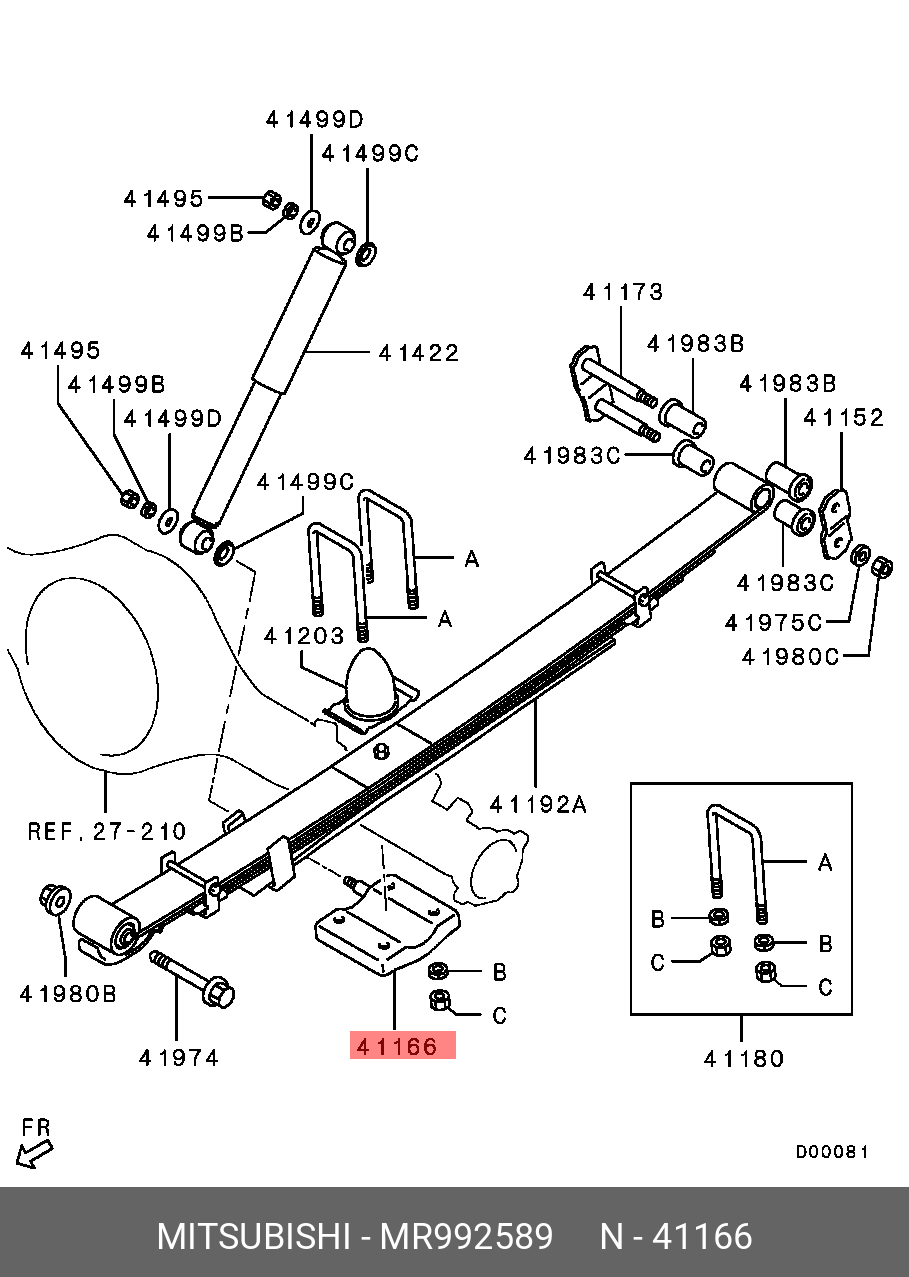 MR992589 MITSUBISHI кронштейн крепления задней рессоры!\ Mitsubishi L200