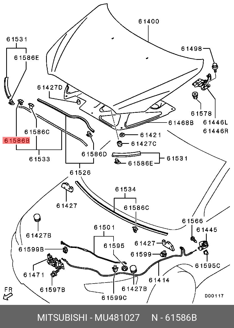 MU481027 MITSUBISHI клипса, капот!\ Mazda 2 07>
