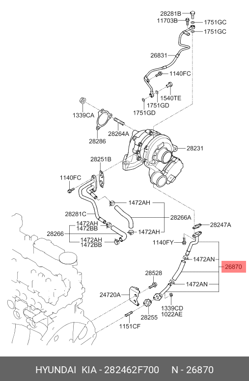 | Наименование | 282462F700 ТРУБКА МАСЛОПРОВОДА |
