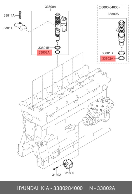 3380284000 MOBIS Hyundai/Kia,Прокладка топливного инжектора 33802-84000