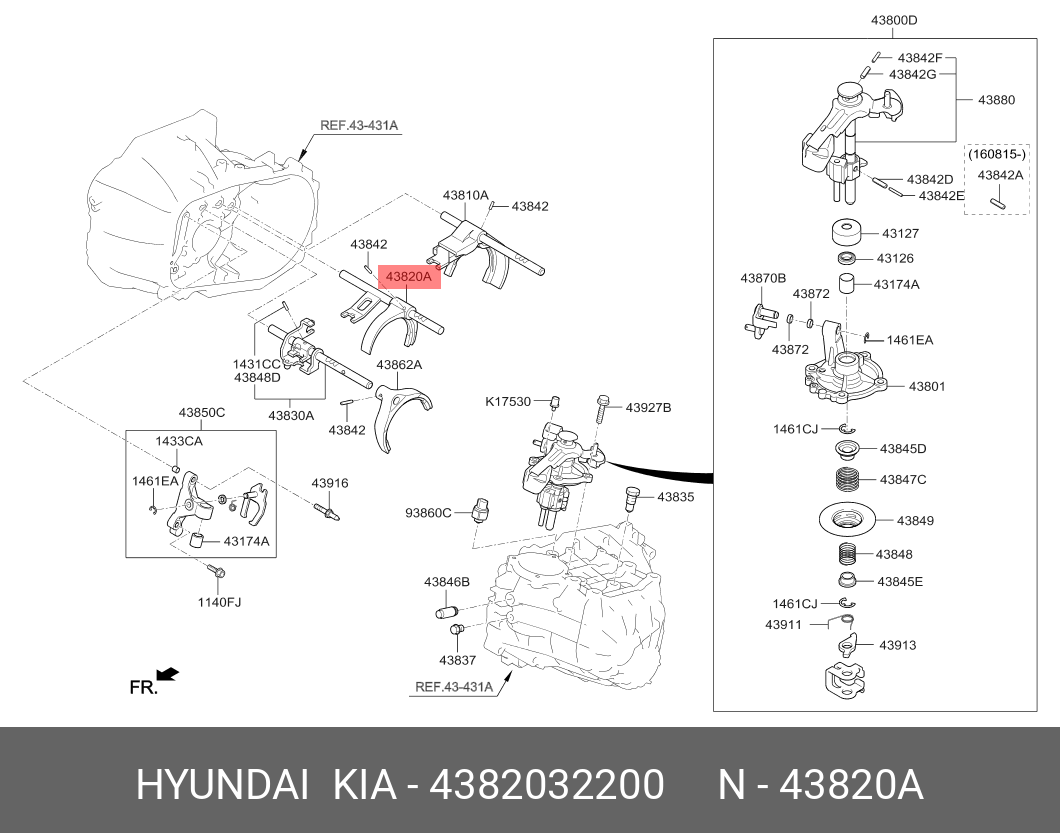 4382032200 MOBIS 4382032200 4382032200 HYUNDAI-KIA Вилка кпп в сборе со стержнем M5CF3