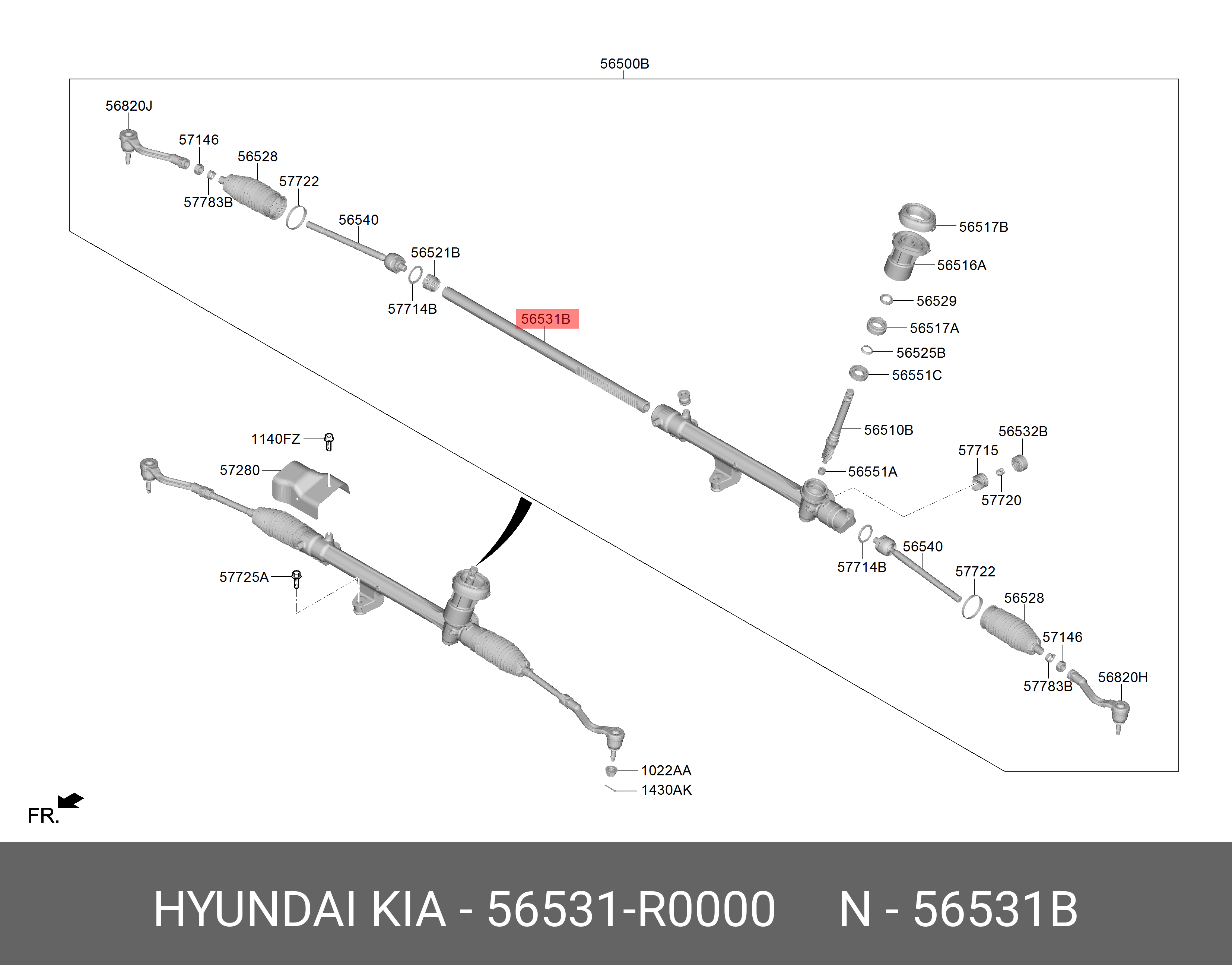 56531R0000 MOBIS 56531R0000 РЕЙКА РУЛЕВОГО МЕХАНИЗМА
