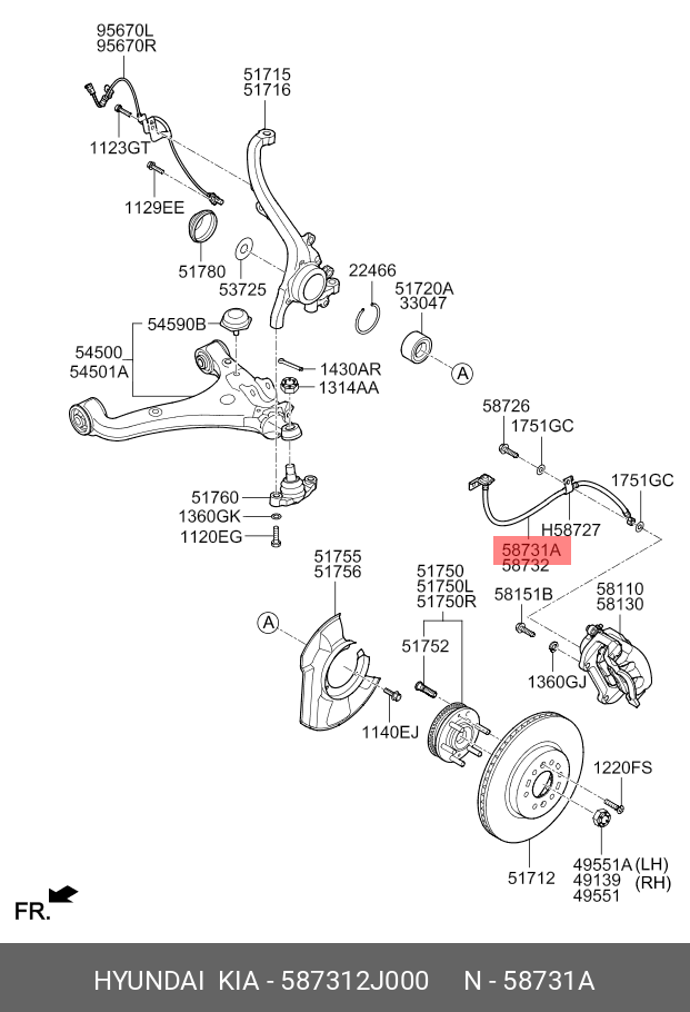 587312J000 MOBIS Шланг тормозной KIA MOHAVE 07- передний левый