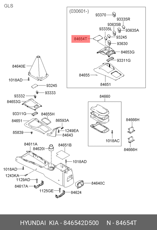 846542D500 MOBIS РЕЗИНОВЫЙ КОВРИК НАПОЛЬНОЙ КОНСОЛИ САЛОНА