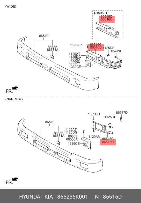 865255K001 MOBIS 865255K001 Усилитель бампера передний правый HD78 Hyundai/Kia