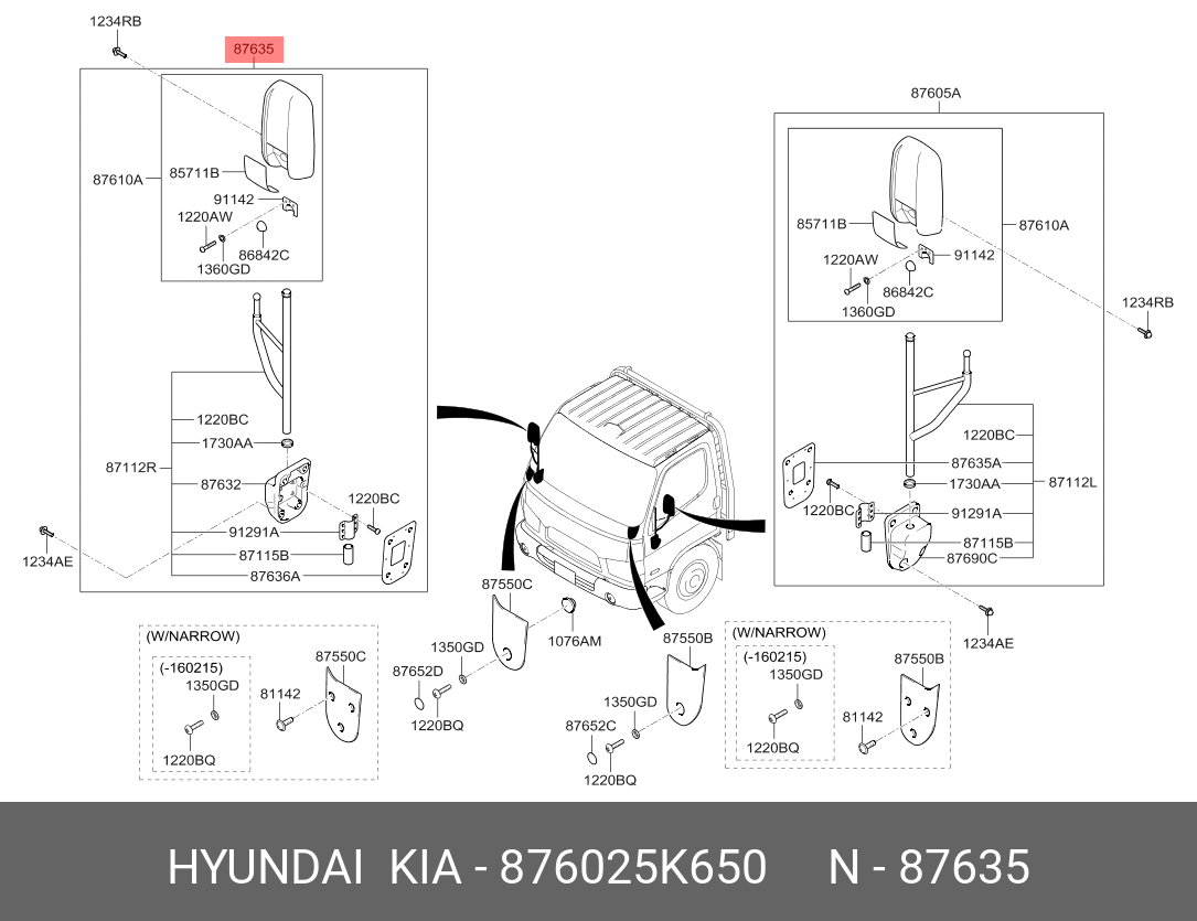 876025K650 MOBIS 876025K650 Зеркало заднего вида правое