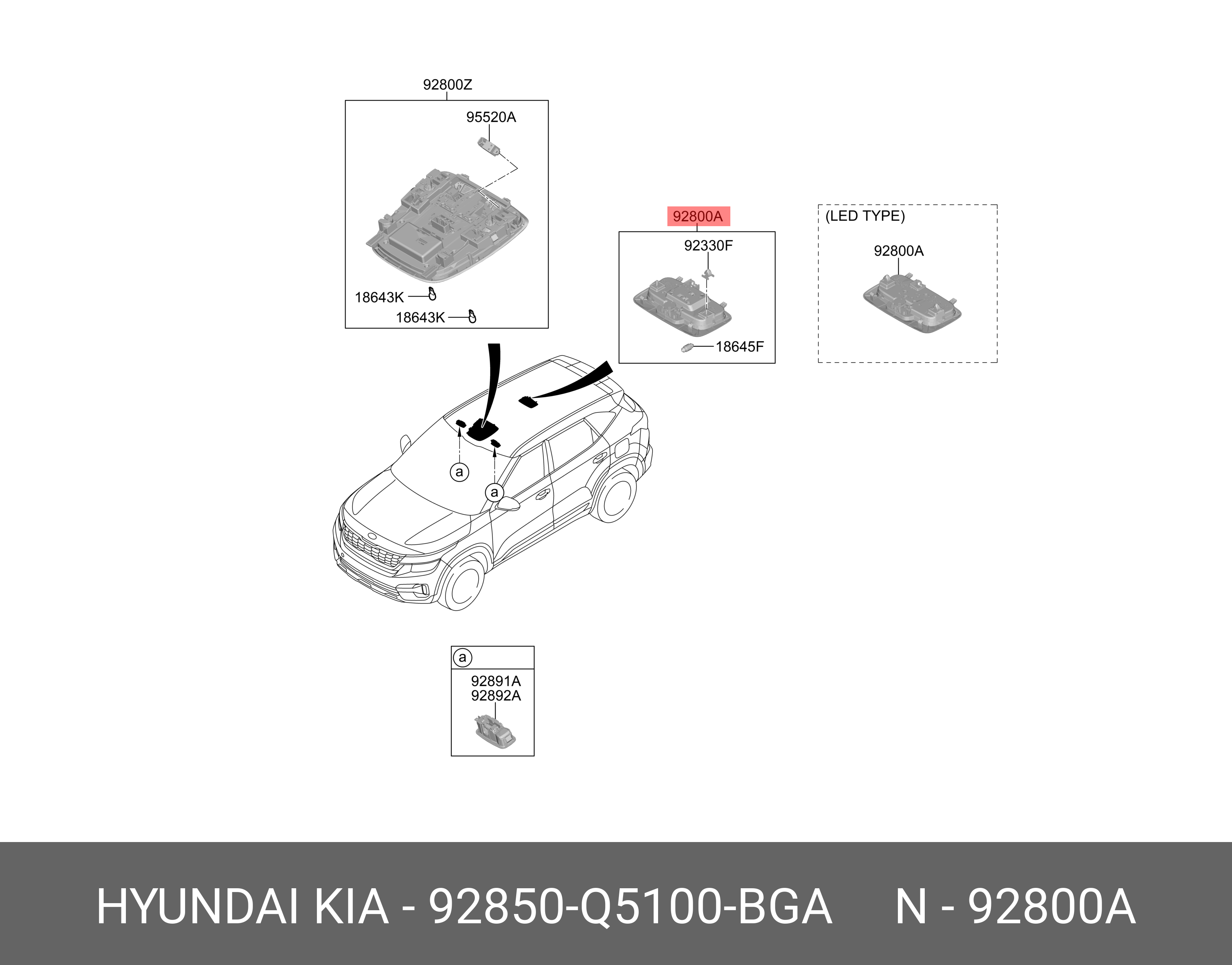 | Наименование | 92850Q5100BGA Фонарь подсветки салона Корея |
