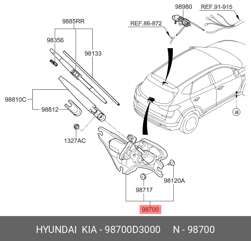 | Наименование | 98700D3000 Мотор стеклоочистителя HYUNDAI TUCSON 15- задний |