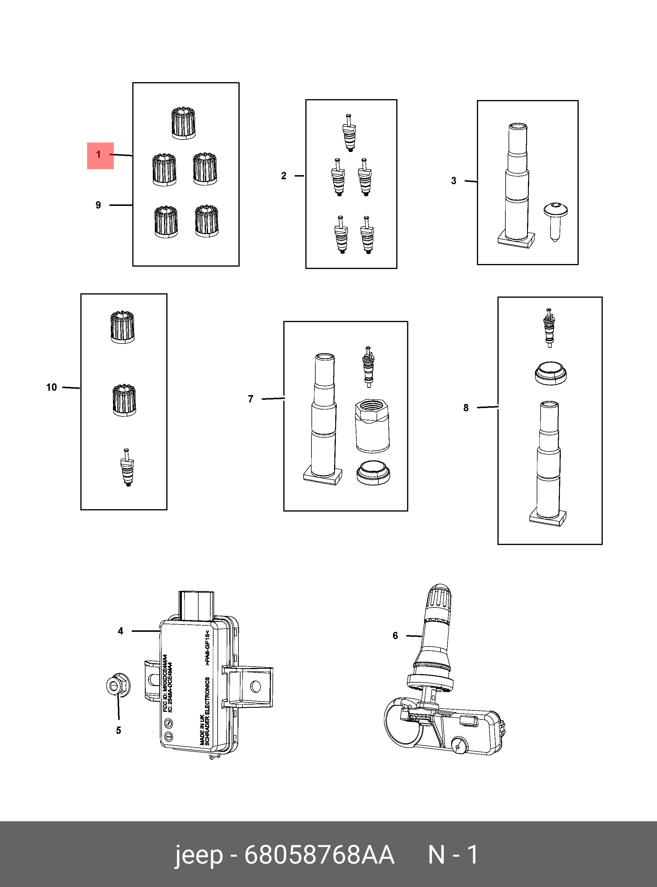 68058 768AA MOPAR 68058768AA Колпачек датчика давления (1 шт на колесо)