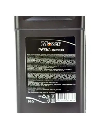 | Наименование | Жидкость тормозная DOT-4 910г MOZER |