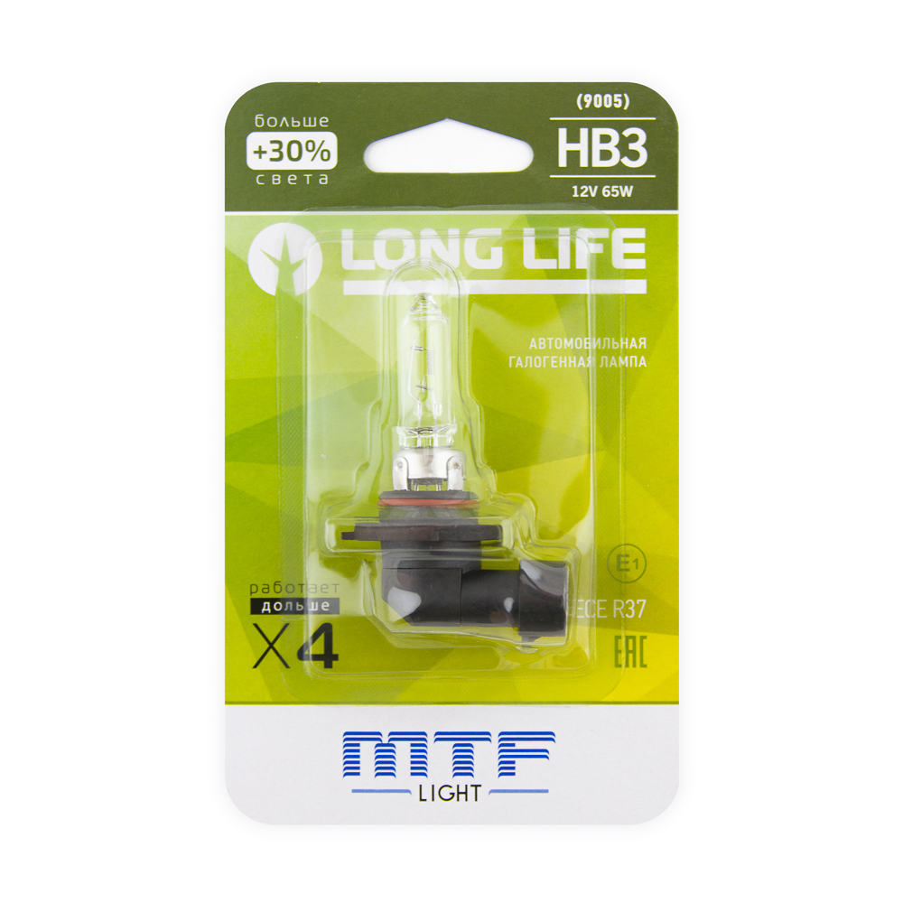 | Наименование | Лампа 12V HB3 65W P20d +30% блистер (1шт.) Long Life MTF |