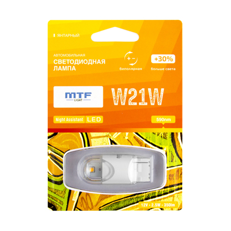 | Наименование | Лампа светодиодная 12V W21W W3x16d блистер (1шт.) MTF |
