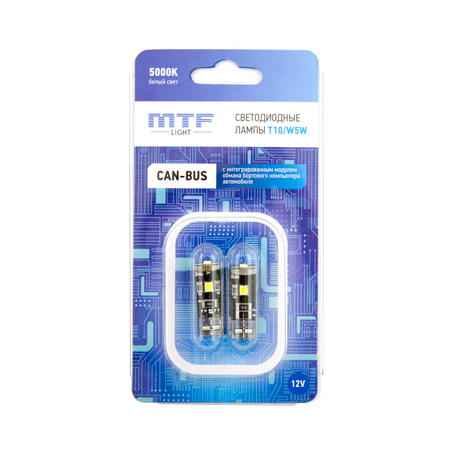 | Наименование | Лампа светодиодная 12V W5W T10W блистер (2шт.) MTF |