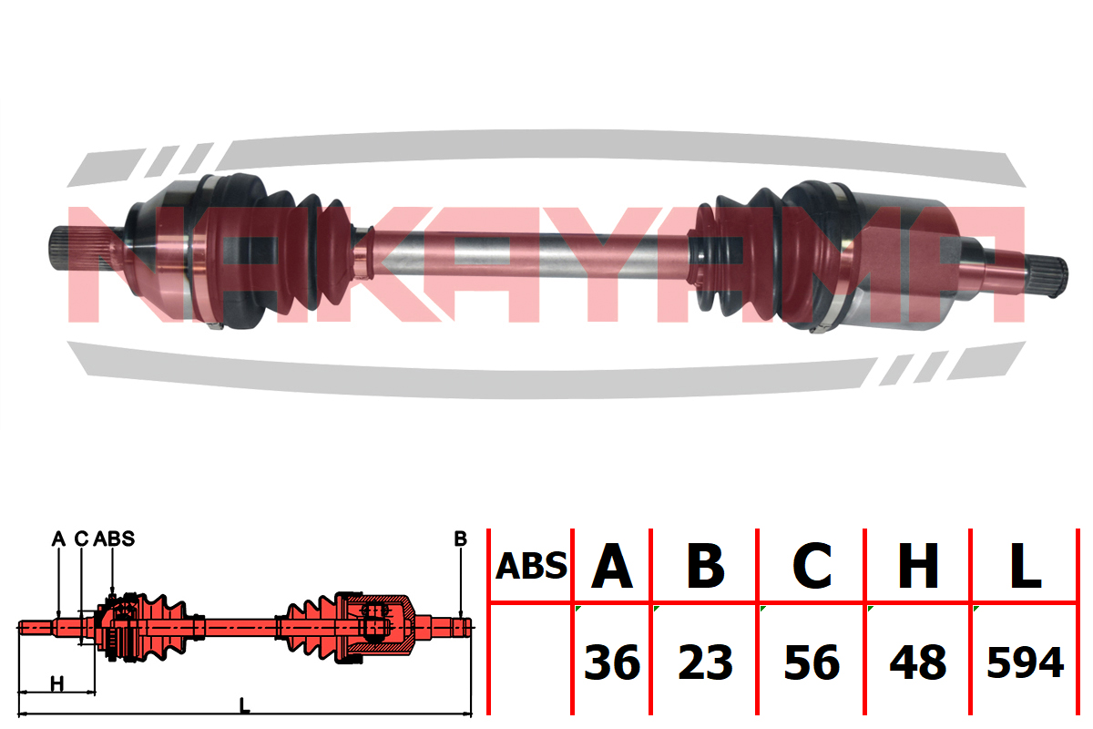 ND1044NY NAKAYAMA ВАЛ ПРИВОДНОЙ, ПЕРЕД. ЛЕВЫЙ FORD C-MAX 04-07, FOCUS LL 06- (36X23X594X