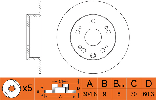 Диск тормозной задний HONDA ACCORD 2.4 08- D305мм RN1407