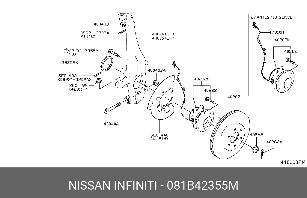 081B42355M NISSAN болт ступицы задней!\ Nissan