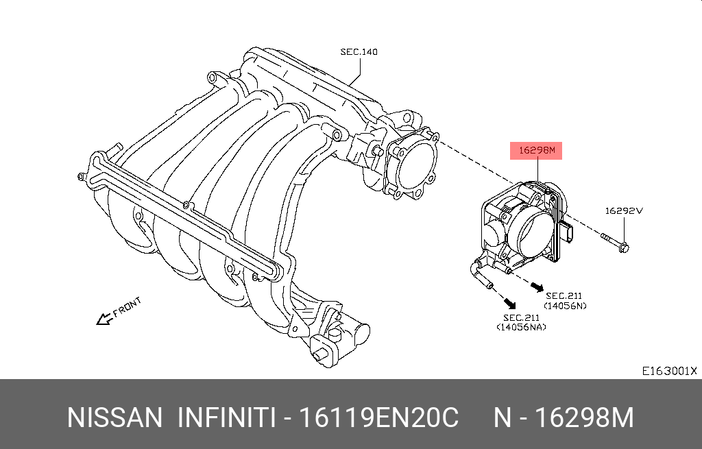 16119-EN20C NISSAN ПАТРУБОК ДРОССЕЛЬНОЙ ЗАСЛОНКИ