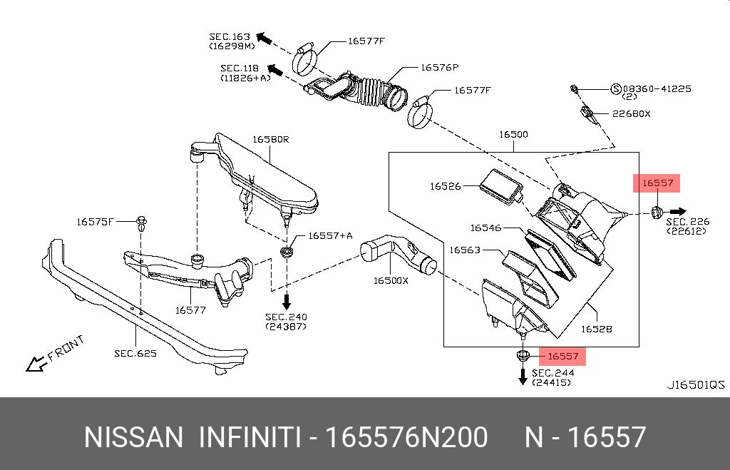 165576N200 NISSAN Опора корпуса воздушного фильтра 16557-6N200