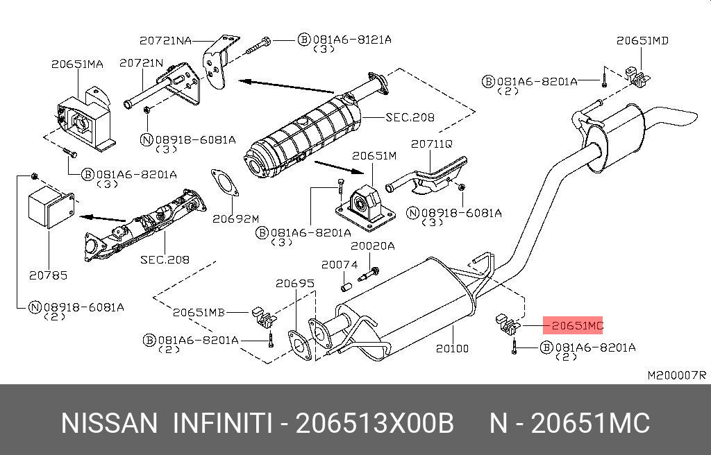 20651-3X00B NISSAN кронштейн крепления глушителя!\ Nissan Murano Z50 03-08