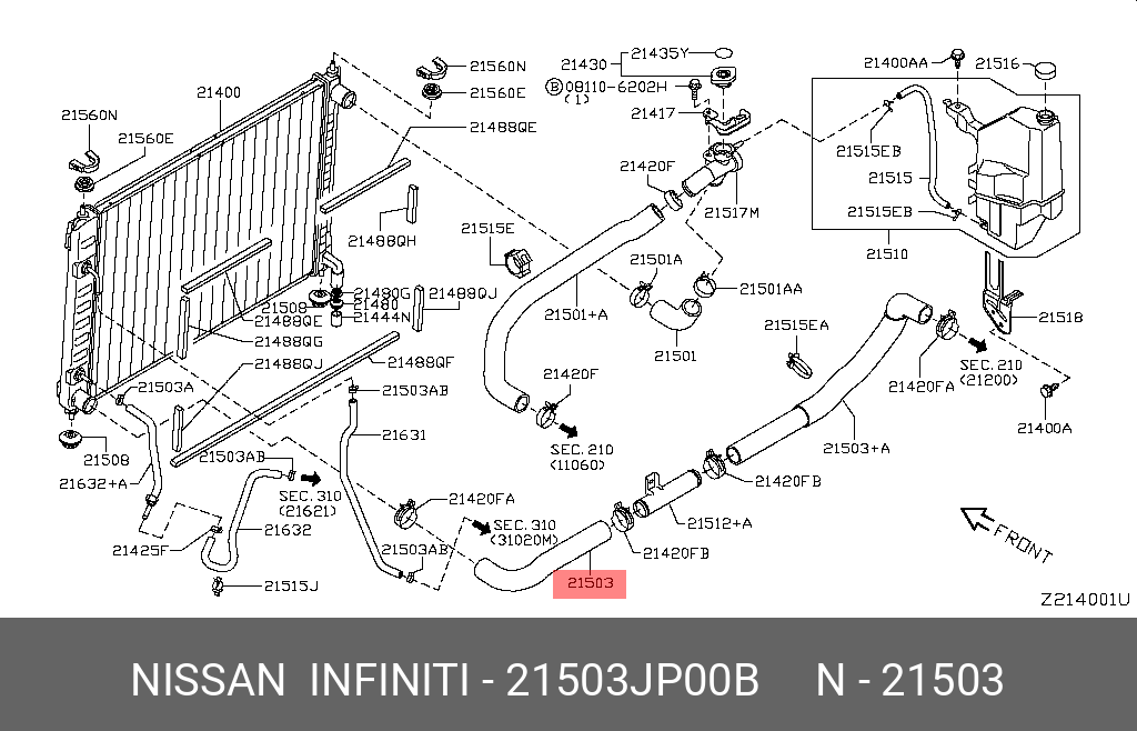 21503-JP00B NISSAN ШЛАНГ СИСТЕМЫ ОХЛАЖДЕНИЯ 21503-JP00B