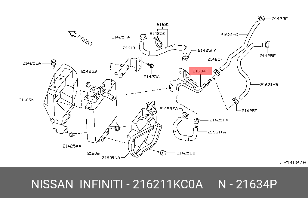 21621-1KC0A NISSAN трубка системы охлаждения АКПП!\ Nissan