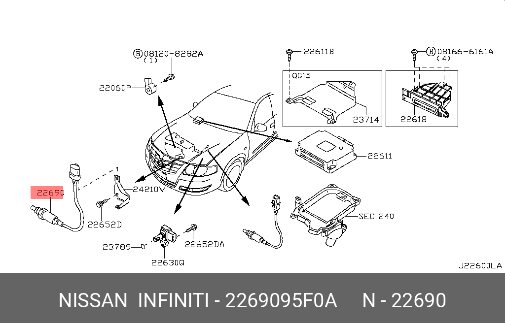 22690-95F0A NISSAN ДАТЧИК КИСЛОРОДНЫЙ № 02 ПЕРЕДНИЙ 22690-95F0A