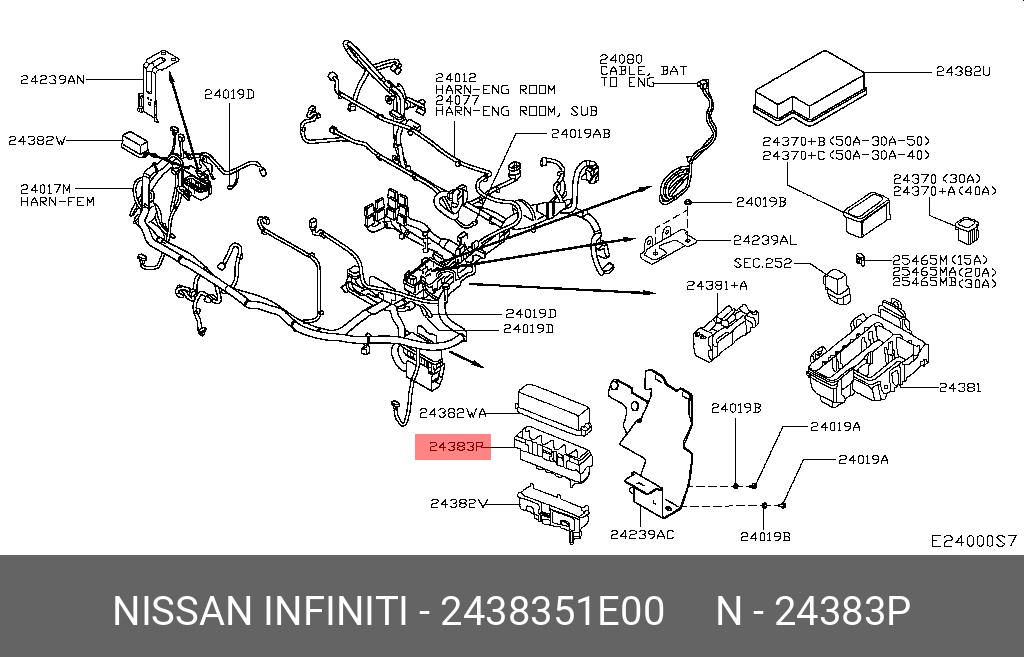 24383-51E00 NISSAN блок предохранителей!\ Nissan Almera 1.4 95-00/Leaf 09-17