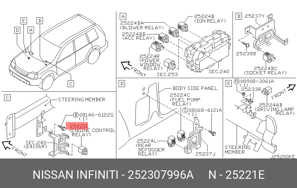 25230-7996A NISSAN реле противотуманной фары!\ Nissan 350Z/Juke/Teana