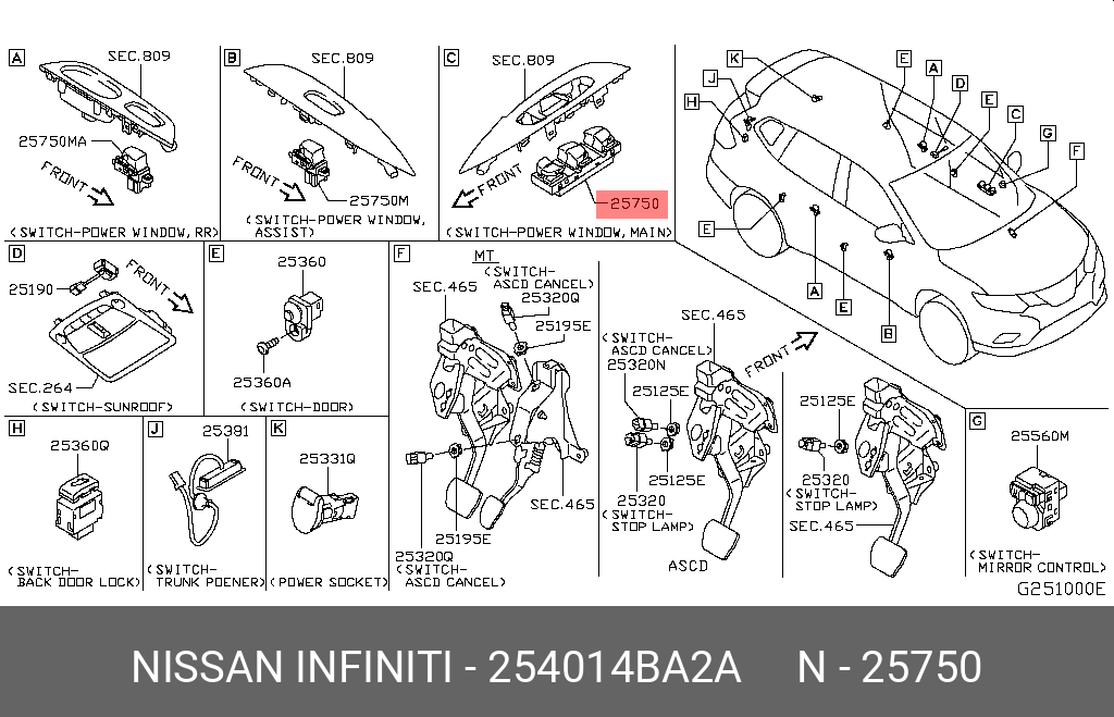 25401-4BA2A NISSAN ВЫКЛЮЧАТЕЛЬ СТЕКЛОПОДЪЕМНИКА, НАПРЯЖЕНИЕ 25401-4BA2A